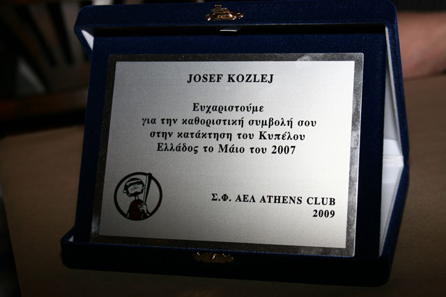 Μέλη του Συνδέσμου απένειμαν πλακέτες στα τιμώμενα πρόσωπα, ενώ ο Λάζαρος Κυριλλίδης παρέλαβε την τιμητική πλακέτα εκ μέρους του απόντα Γιόζεφ Κόζλεϊ. Είναι το ελάχιστο που μπορούσαμε να κάνουμε απέναντι στο Σλοβάκο ποδοσφαιριστή που βοήθησε τα μέγιστα στην κατάκτηση του πλέον πρόσφατου τίτλου.