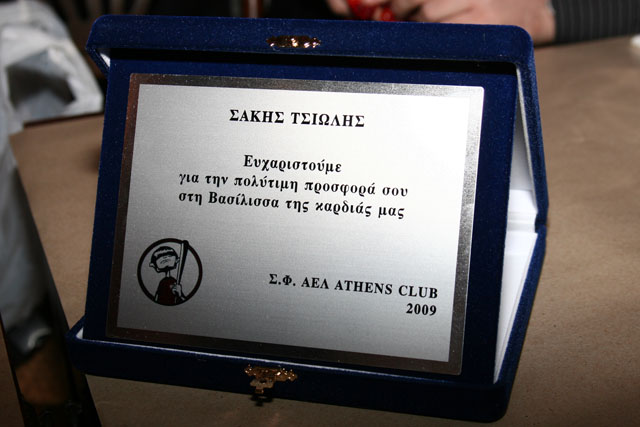 Η βράβευση όμως του Σάκη Τσιώλη ήταν, όπως το περιμέναμε όλοι μας, κάτι παραπάνω από ιδιαίτερη. Πέρα από την αναμενόμενη συγκίνηση που ξεχείλιζε από όλους, μας δόθηκε η ευκαιρία να πληροφορηθούμε από τα ίδια του τα χείλη πως ήταν η πρώτη φορά που βραβεύονταν από μέλη της βυσσινί οικογένειας για την προσφορά του, κάτι που φυσικά δεν μας εξέπληξε, αλλά από την άλλη μεριά μας γέμισε με περηφάνια.