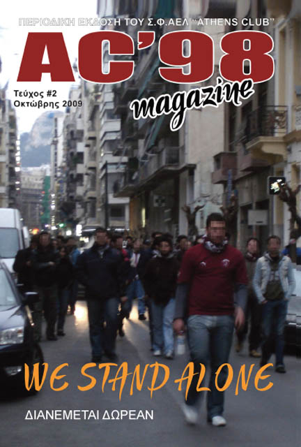 Το δεύτερο τεύχος του AC’98 Magazine είναι γεγονός! Ανανεωμένο, με διπλάσιες σελίδες, άρθρα, αφίσες, φωτογραφίες και επιστολές. Σε πρώτη φάση μοιραστηκαν μερικές χιλιάδες αντίτυπα στο ματς με τον άρη.